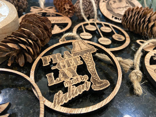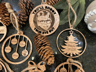 Each ornament is laser cut and engraved from birch wood and is a unique timeless gift that will not fade over time.